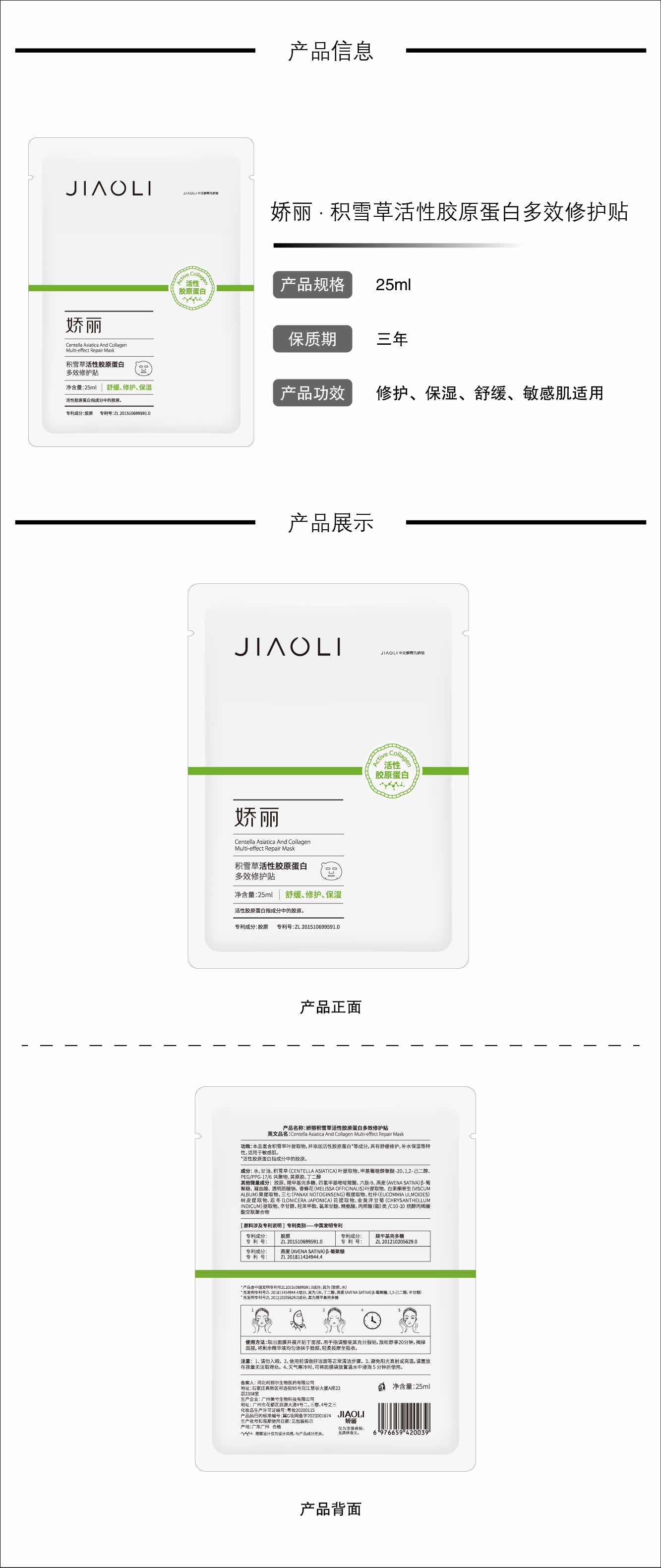 嬌麗積雪草活性膠原蛋白多效修護(hù)貼