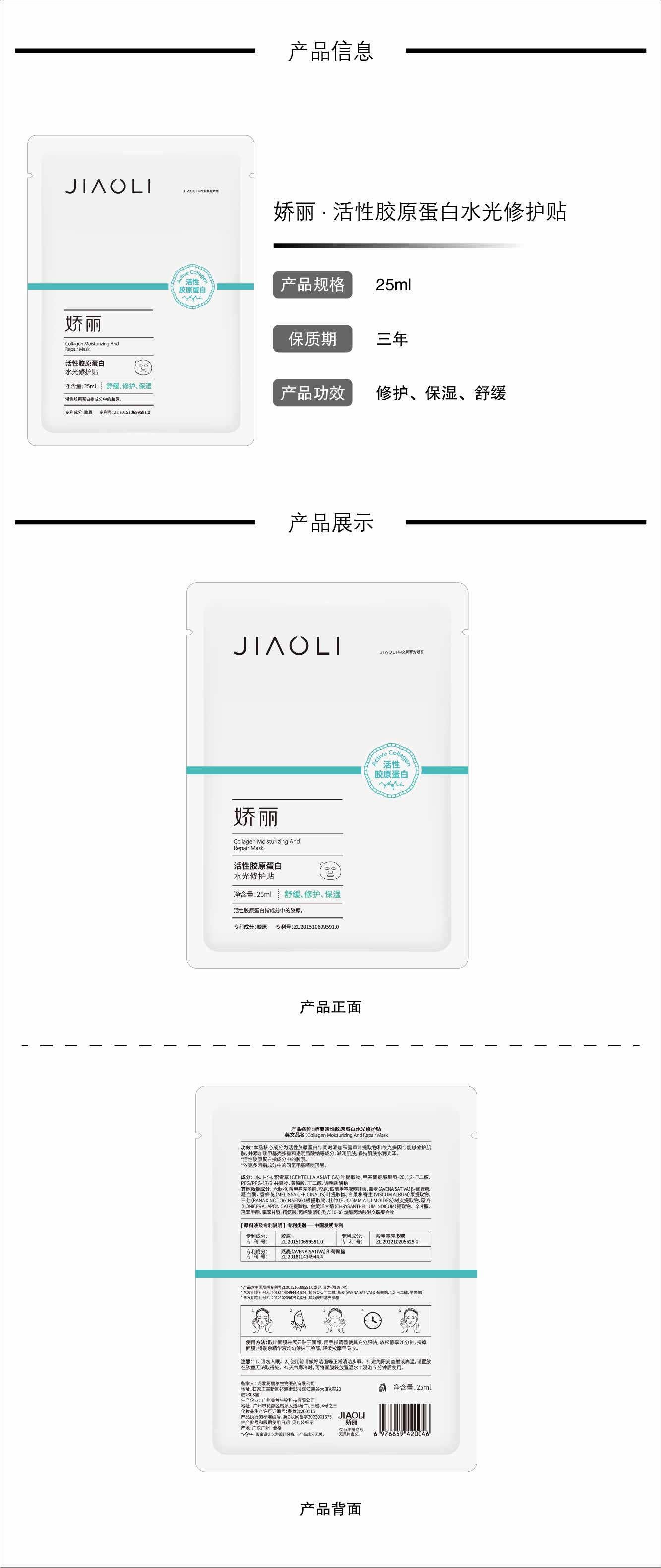 嬌麗積雪草活性膠原蛋白多效修護貼